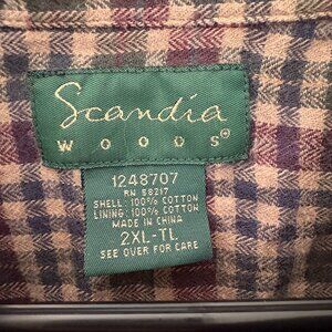 VTG Vintage Scandia Flannel Lined Button Down Shirt size 2XL Burgundry & Plaid. This is an amazing vintage find for oversized shacket lovers! Wear this as a shirt, dress, shacket, or however you want! Perfect for cozy fall days. Missing bottom button (pictured) but still fully functional.