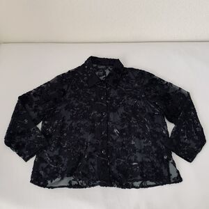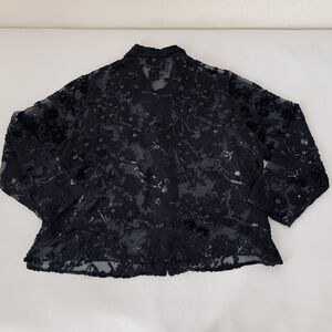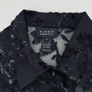 VTG Virgo Top Women 16 Black Velvet Burnout Sheer Sparkle Button Whimsygoth Goth