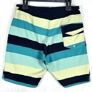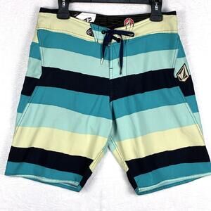 VTG Volcom Mens 31 Y2K Blue Striped V2S 2-Way Stretch Board Shorts Swim Trunks