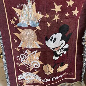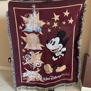 VTG WALT DISNEY WORLD MICKEY MOUSE KNITTED THROW BLANKET