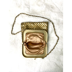 VTG WHITING & DAVIS Gold Large Mesh Gold Frame Shoulder BAG Evening PURSE