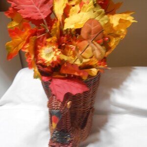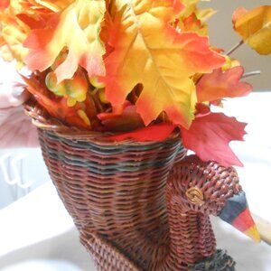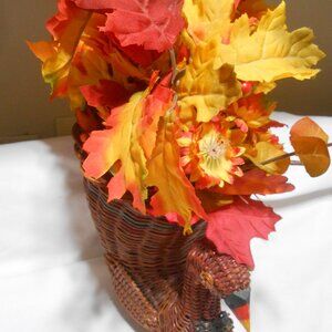 VTG WICKER RATTAN THANKSGIVING TURKEY CENTERPIECE FALL FLOWERS BOUQUET π¦π NWOT