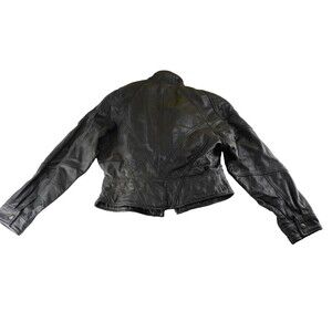 Crafted for those who appreciate the blend of classic style and comfort, this vintage Wilsons leather jacket is a timeless addition to your wardrobe. The glossy black leather outer shell provides a sleek look, while the 3M Thinsulate-Olefin & Polyester insulation ensures warmth during the brisk fall and winter months. The jacket is thoughtfully designed with a removable nylon lining, offering versatility in colder weather. Attention to detail is evident with features like a collared neckline, zip closure, and practical pockets, all contributing to a regular fit that's both flattering and functional. The solid black color, complemented by subtle accents such as the logo and zipper, makes this motorcycle jacket a perfect choice for casual outings or travel, ensuring you'll stay stylish on the go.