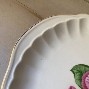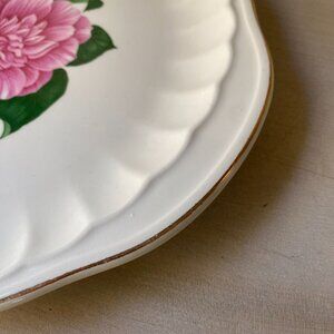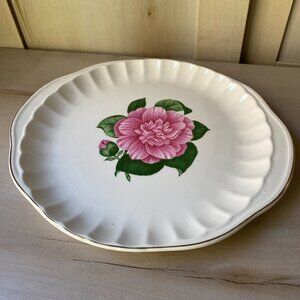 VTG WS George Camellia pink floral gold trim scalloped edge 12" platter plate