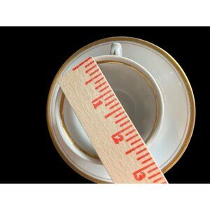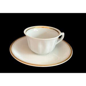 This Walbrzych China "Empire" Demitasse Europa Cup & Saucer set from Poland features a classic white color with gold accents, giving it an elegant and timeless look.