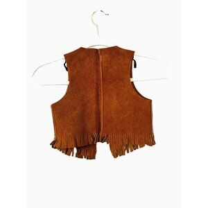 Authentic vintage Walker’s western cowboy vest in soft suede with fringe trim, star sheriff detail, and rodeo-inspired style. A rare piece with Longhorn and horse-riding cowboy vibes, perfect for collectors or little ones playing dress-up in true western fashion. Marked child size 6 with flat measurements: 12" pit to pit and 14" length. Made with classic craftsmanship, in excellent pre-owned condition. Ideal for rodeo events, Halloween costumes, western parties, or as a statement piece for cowboy-core styling.