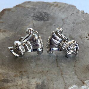 VTG Wallace Sterling Silver Hollow "Romance Of The Sea" Screwback Earrings
