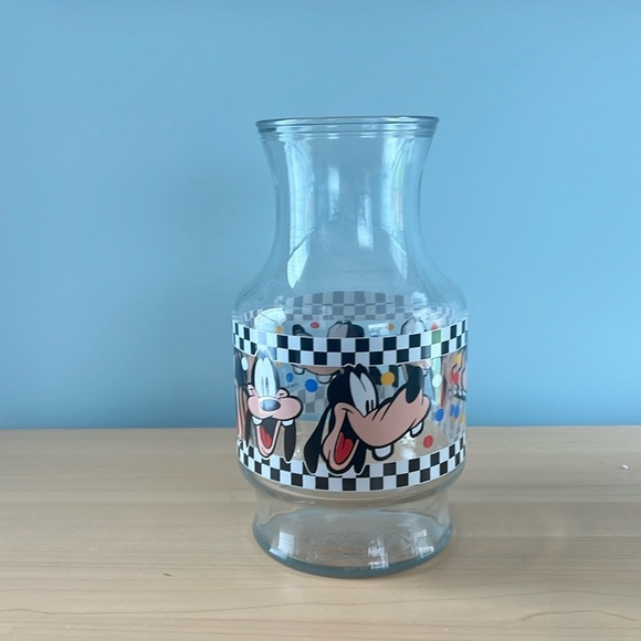 VTG Walt Disney Co Goofy Checkerboard Glass Pitcher Carafe 9" Anchor Hocking
