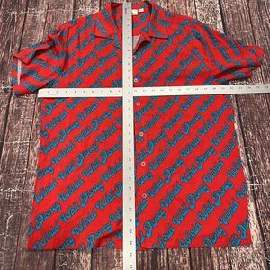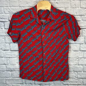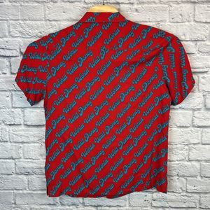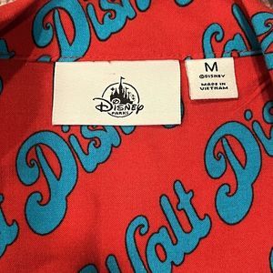 VTG Walt Disney Parks World All Over Print Logo Rayon Hawaiian Shirt Size Medium.