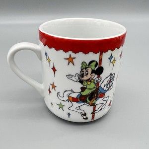 VTG Walt Disney Prod. Mug Porcelain Japan Mickey Mouse Donald Minnie Carousel LN