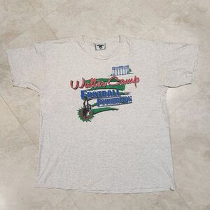 Selling Vintage 1990s VTG Walter Camp Football Foundation WCFF Mens XL USA Made Graphic T Shirt. It has some yellowing (See Photos). You can see the condition from the photos. You can get further information from looking at what is shown in the photos. Pricing low to sell fast. I offer combined shipping on multiple purchases. All purchases should arrive within 2 to 9 days. International buyers should expect longer shipping time. If there are any issues please do the right thing and message me before leaving feedback.