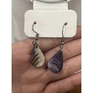 VTG Wampum Shell Teardrop Shape Drop Hook Earrings 925 Sterling