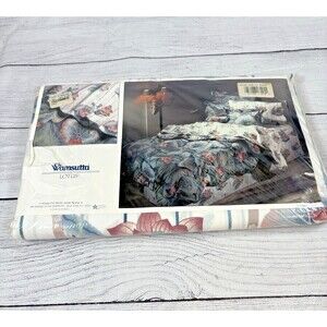 VTG Wamsutta KING FLAT SHEET Supercale 200 TC LOTUS Floral Scalloped Edge NOS