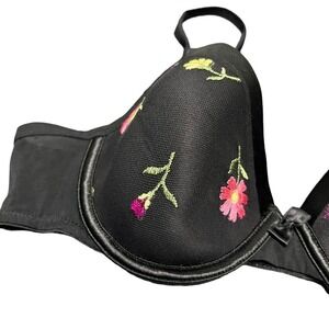 VTG Warners Bra 38B Black T shirt Embroidered Flowers Underwire