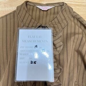 VTG Wash & Wear Brown Pinstriped Ruffled Collar Long Sleeve Dress Girls 11/12 L