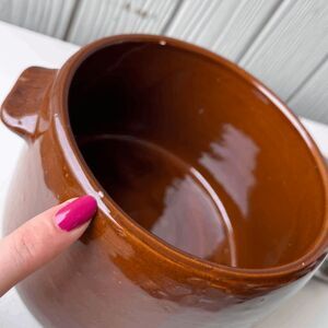 Originally marketed for baking beans or stews, these durable crocks have become a favorite for modern repurposing: think coffee bean storage, countertop utensil holder, cookie jar, compost crock, or even a plant pot cover. Its deep cinnamon-brown glaze and reflective lid make it both functional and stylish for a kitchen, bar, or open-shelf display.