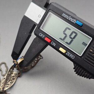 Adorn your neckline with this elegant vintage West German silver filigree necklace. The intricate design is accentuated by a captivating mottled blue glass stone, offering a timeless appeal for those who appreciate the art of detailed craftsmanship. The set adds a touch of sophistication to any collection.