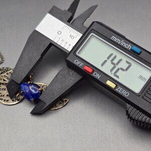 VTG West German Silver Filigree Necklace 16" Blue Glass Stone 1950s