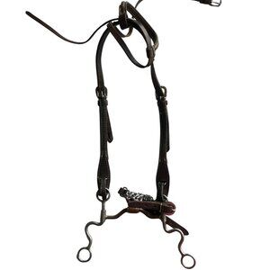 Features: Floral-stamped studs, silver curb bit with copper roller, decorative shanks, curb chain