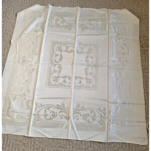 Vtg White Damask Metallic Home Dining Tablecloth & Napkins 49.5"x48.5" & 12"x12"