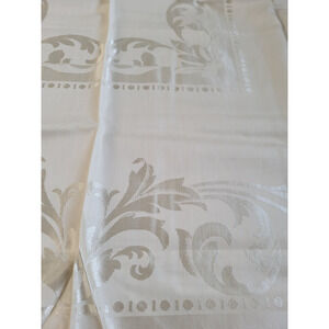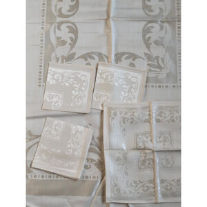 VTG White Damask Metallic Home Dining Tablecloth & Napkins 49.5"x48.5" & 12"x12"