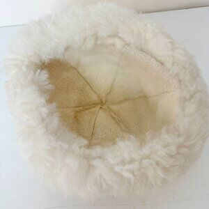 This vintage shearling hat tells a story of warmth and elegance. Its plush lamb fur whispers of cozy winters and timeless sophistication. Whether strolling through snowy paths or attending a winter gathering, this hat adds a touch of charm to any ensemble. A delightful piece for both function and style.