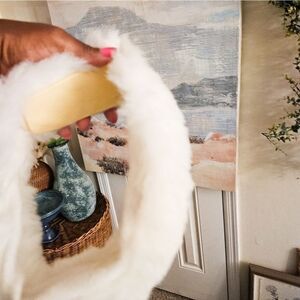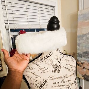 VTG White Faux Fur Stylish Velcro Detail Adjustable Head Warmer.