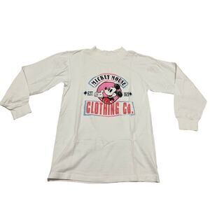 VTG White Long Sleeve Cotton Mickey Mouse Graphic Shirt Made in USA Womans Small