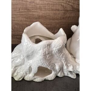 Super duper adorable ! Vintage white ceramic mouse and tree stump planter. Stamped 99 INTL on the bottom with a sticker from Allen’s Floral. No chips or cracks.