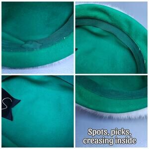 VTG White Rabbit Fur Hat Sonni California Green Velvet Fascinator Elegant 60s