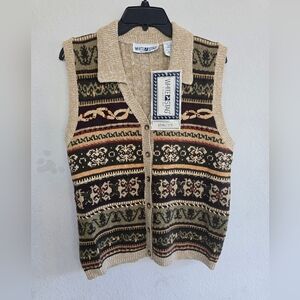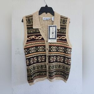 VTG White Stag Sweater Vest Women L Button Up Collared Nordic Boho Artsy…