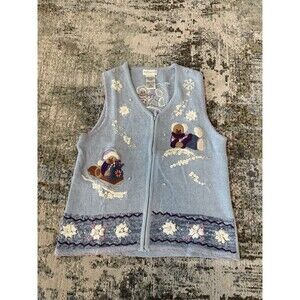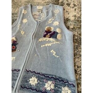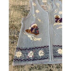 VTG White Stag Sweater Vest Womens L Ugly Christmas Winter Skating Teddy Bears