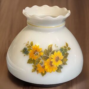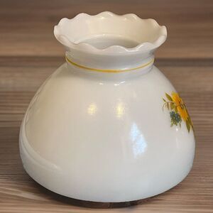 VTG White Student Glass Lamp Shades with Yellow and Blue Flowers - 2 Available