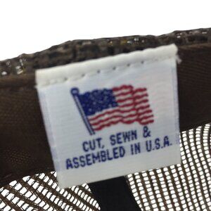 This Whiteknuckler Brand vintage trucker hat showcases a classic yellow front with a stylish brown mesh back. The breathable design ensures comfort, while the snapback closure offers adjustable sizing. Proudly cut, sewn, and assembled in the USA, this hat combines quality craftsmanship with timeless style.