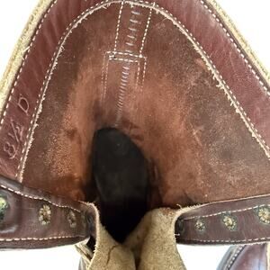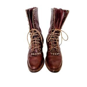 These shoes were purchased to be used as wardrobe for a tv production. The leather is great quality and the boots have a nice weight, definitely feels like a well made boot. The studio added distressed silver embellishments on the top and the boots have general wear but they are in overall good vintage condition.