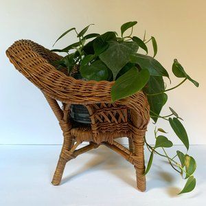 VTG Wicker Doll Chair Boho Plant Holder Stand Dorm Decor Bohemian