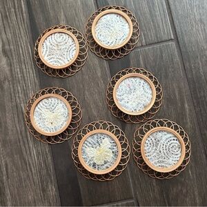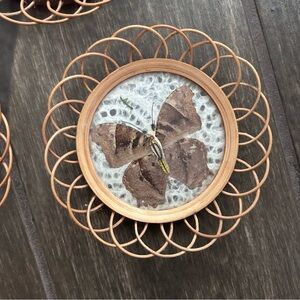 VTG Wicker Rattan Pressed Butterfly Coasters Set of 6