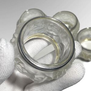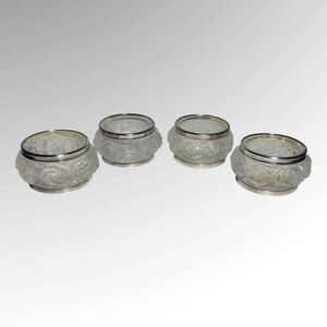 VTG William Adams Napkin Rings Set of 4 Frosted Rose Lead Crystal Silver Plated