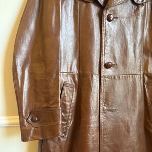 VTG William Barry Brown Leather Trench Coat Men's Size 38