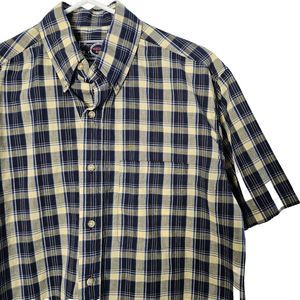 William Bay Trading Co Blue and Yellow Plaid Men's Button Down Shirt 1 Pocket S/Sleeve Large Approx. Measurements 31" L 24"/48" Chest See photos for more details Photos are part of the description