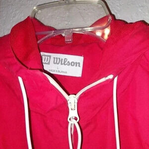 VTG Wilson Red Track Jacket Men’s Sz Large Windbreaker Zip Front. Front Pockets. Small stain on front shown in picture.