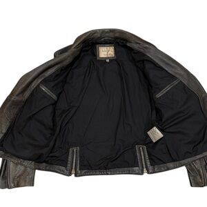 Authentic vintage Wilson’s distressed leather biker jacket in rich brown — rugged, timeless, and made to last.
