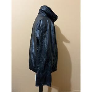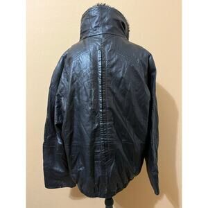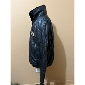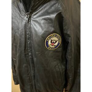 VTG Wilson’s Leather Bomber Jacket Navy Patch Faux Fur Removable Vest Aviator