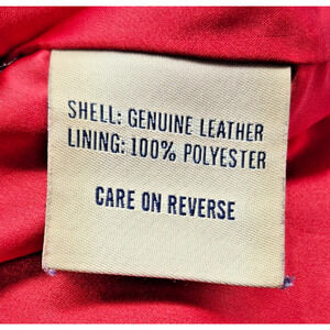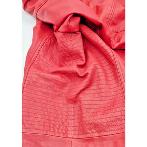 This VTG Wilsons Leather Jacket is a women's size 3X with a zip front and zip pockets and sleeves. Made of soft leather with a solid red color, it has lower sleeve zippers, and pockets for added style and functionality. Perfect for various occasions like travel, parties, casual outings, workwear, or business meetings, this vintage-inspired motorcycle jacket from Wilsons Leather adds a touch of 80s and 90s flair to your wardrobe. With a mid-length design and long sleeves, this jacket is ideal for the winter, fall, and spring seasons, and should be cleaned by Leather professional only to maintain its quality.