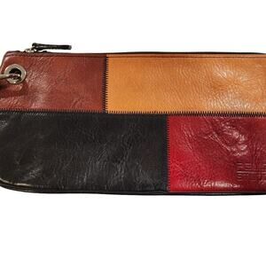 VTG Wilsons Leather Patchwork Wristlet Clutch Boho Retro MOD Y2K Festival 90s