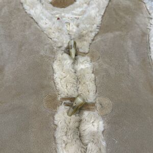 VTG Wilsons Leather Suede Vest Tan Faux Fur Lined Toggle Buttons Boho XL