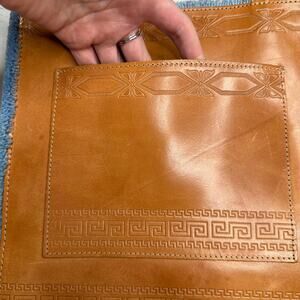 VTG Wilsons Leather Tooled Bag Brown Blue Fringe Boho Western Hippie Purse Y2k