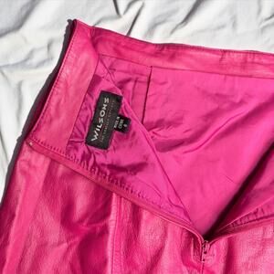 Vintage Wilsons leather pink skirt, size 6. It's got a bold color and is fully lined, zipper works great. Perfect for anyone who loves a pop of color in their wardrobe.
