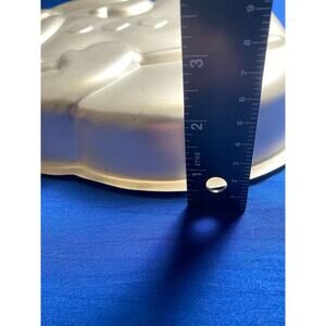 This pan is in good pre-owned condition. Please see photos for details. It does have some small marks, which is normal for a vintage item like this. These minor imperfections won't affect the shape of your cake at all.