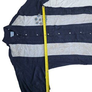 VTG Windham Pointe Cuban Black Striped Palm Print Mens Sz M Button-up Shirt